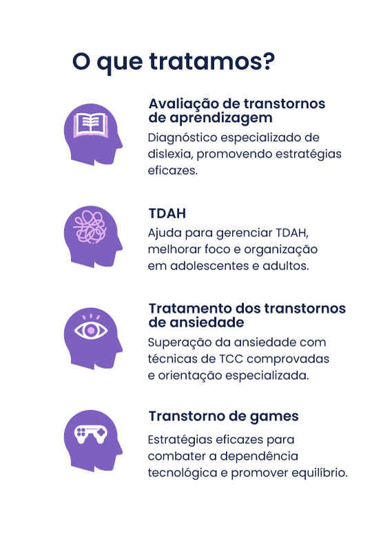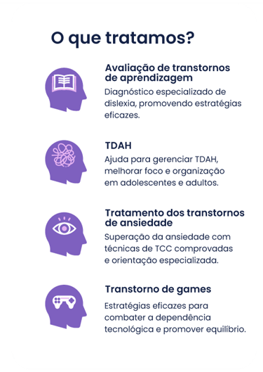 Cada criança ou adolescente é único, e o meu trabalho vai muito além do diagnóstico. Aqui, ofereço um espaço de acolhimento para ajudar seu filho a enfrentar os desafios emocionais e comportamentais, sempre com base na Terapia Cognitivo-Comportamental (TCC), voltada para a infância e adolescência.